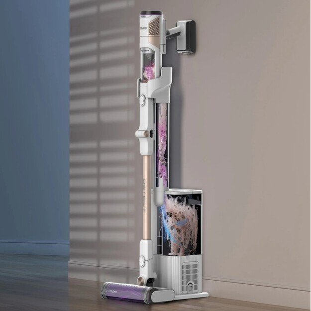 Puikiai tinka viso namo ar greitam kasdieniam valymui. Šis belaidis siurblys visada paruoštas darbui ir įkraunamas, kai yra padėtas ant įkrovimo bazės. LED ekranas rodo realiuoju laiku informaciją apie baterijos būklę, nešvarumų aptikimą ir valymo režimus. *Testuota ECO režimu, su ne varomąja galvute.